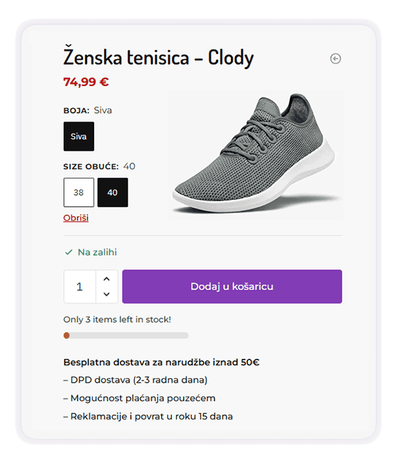 MODULARNO PRIPREMLJENA WEB TRGOVINA ZA MALE PODUZETNIKE I TRGOVCE S POTPUNO DEFINIRANIM KATEGORIJAMA i POTKATEGORIJAMA PROIZVODA, POTREBNIM IZBORNICIMA, ATRIBUTIMA, VARIJACIJAMA ARTIKLA, FILTERIMA PRETRAŽIVANJA, OPCIJAMA DOSTAVE I NAČINIMA PLAĆANJA.